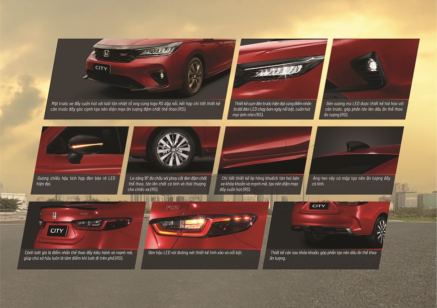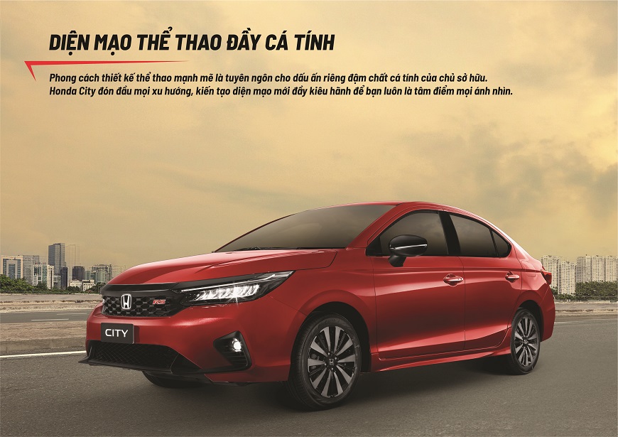 Phong cách thiết kế thể thao đầy mạnh mẽ, cuốn hút là tuyên ngôn cho dấu ấn riêng đậm chất cá tính của chủ sở hữu. Honda City đón đầu mọi xu hướng, kiến tạo diện mạo mới đầy kiêu hãnh để bạn luôn là tâm điểm của mọi ánh nhìn.