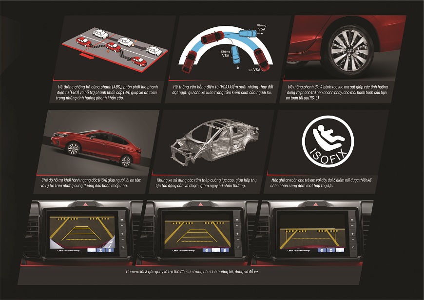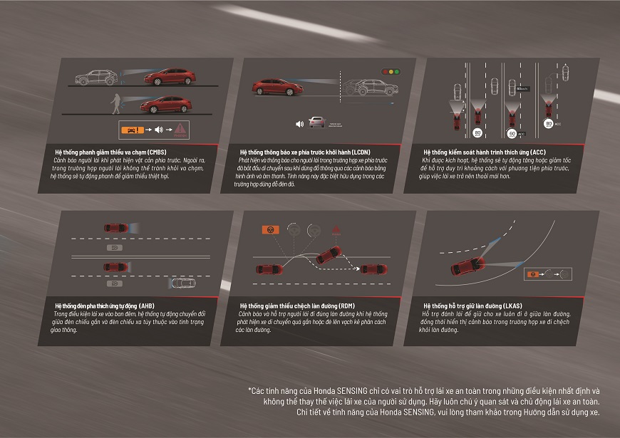 Hệ thống phanh giảm thiểu va chạm (CMBS) – Cảnh báo người lái khi phát hiện vật cản phía trước. Ngoài ra, trong trường hợp người lái không thể tránh khỏi va chạm, hệ thống sẽ tự động phanh để giảm thiểu thiệt hại.
